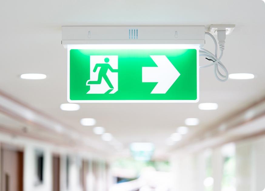 In an emergency, lighting failure can put lives at risk. Our emergency lighting systems provide essential illumination to guide people safely out of the building when the power goes out.